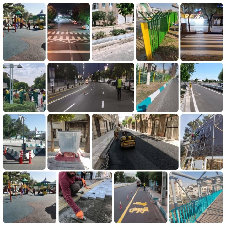 وی ادامه داد: روکش نیمه مکانیزه آسفالت، پیاده رو سازی، مرمت و بازسازی آبنمای میدان نماز، مرمت و بازسازی سرویس بهداشتی بوستان های کمیل و سنا، بازپیرائی فضای سبز، رفع نقص وسایل بازی کودکان، اجرای پوشاننده ، رنگ آمیزی نرده، جداول، پل عابرپیاده و مخازن و زیرمخزنی، نوسازی مخازن، اجرای شیب 8درصد پل هوائی میدان نماز، نوسازی مخازن، روشنائی و نورپردازی فضا،نصب پایه چراغ دکوراتیو،اجرای خط کشی محوری،کف نویسی، بلوک عابر، اصلاح هندسی میادین نماز و شهدای شاملو و مرمت سرپناه اتوبوس،اصلاح هندسی میدان هادی ساعی و خیابان آستانه، پیاده روسازی و روکش نیمه مکانیزه آسفالت و لوله گذاری، ایجاد شبکه روشنائی، تعویض تابلو برق، خط کشی محوری، علائم ترافیکی، کف نویسی، بلوک عابر، مرمت سرپناه ایستگاه اتوبوس، نصب چراغ راهنما، رنگ آمیزی ایستگاه اتوبوس، بیلبورد تبلیغاتی، جداول، پل عابر پیاده و تندیس شهدا در این محورها در حال اجراست.