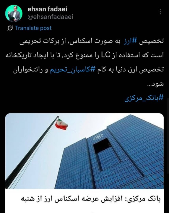 در شرایطی که کشورهای جهان با استفاده از اعتبارات اسنادی (LC) و سامانههای بینالمللی پرداخت، تجارت خارجی خود را با نظمی شفاف و قابل رهگیری انجام میدهند، تصمیم بانک مرکزی برای تکیه بر اسکناس، گامی در خلاف جهت توسعه مالی و نظم اقتصادی است.تخصیص ارز به صورت اسکناس از برکات تحریمی است که استفاده از LC را ممنوع کرد، تا با ایجاد تاریکخانه تخصیص ارز، دنیا به کام کاسبان تحریم و مفسدین باشد.