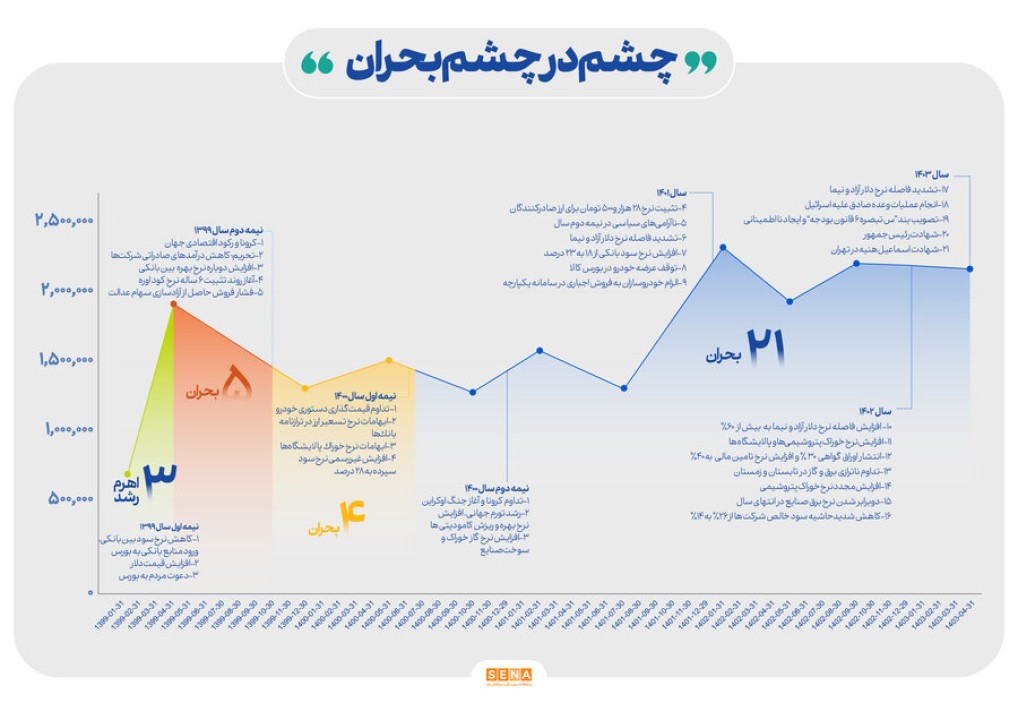 بررسیهای آماری گویای این واقعیت است که شاخص بورس از نیمه دوم سال 1400 تا 1403 روند دیگری را تجربه کرده است. چنانکه بهرغم اتفاقات مهم فاندامنتالی همچون آغاز جنگ اوکراین و اثر آن بر رشد تورم جهانی کامودیتیها، تشدید ناترازی انرژی در حوزههای تامین برق و گاز صنایع، رشد نرخ ارز در بازار آزاد و افزایش فاصله بین نرخ دلار در سامانه نیما و بازار آزاد، افزایش نرخ سود سپردههای بانکی از 18 به 23 درصد در زمستان 1401، افزایش نرخ خوراک پتروشیمیها و پالایشگاهها، انتشار اوراق گواهی 30 درصدی و...، شاخص بورس رشدی 59 درصدی داشته است.