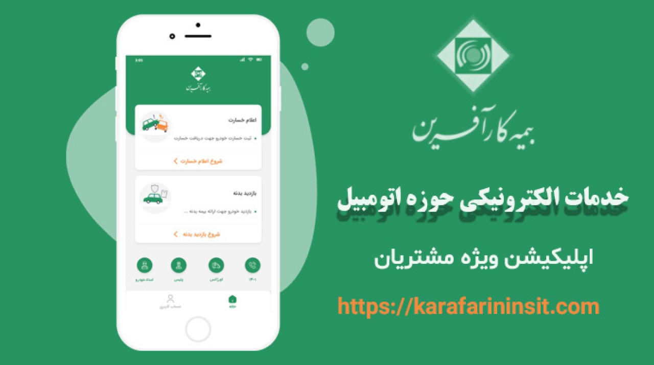 شرکت بیمه کارآفرین در راستای بهبود روند پرداخت خسارت ثالث مالی و بدنه خودرو، اپلیکیشن مشتری را برای ارائه خدمات پرداخت خسارت آنلاین و سیار، در اختیار بیمه گزاران قرارداده است. بیمه گذاران شرکت می توانند، جهت دسترسی به خدمات ویژه پرداخت خسارت، اپلیکیشن مشتری را از آدرس karafarininsit.com نصب نمایید. ارایه خدماتی از قبیل اعلام خسارت، بازدید بدنه خودرو از سرویسهایی هست که اپلیکیشن بیمهگذار در اختیار مشتریان خود قرار میدهد. بیمه گذاران می توانند بدون مراجعه حضوری و با استفاده از بستر آماده شده به صورت آنلاین و الکترونیکی فرایند های فوق را انجام دهند.