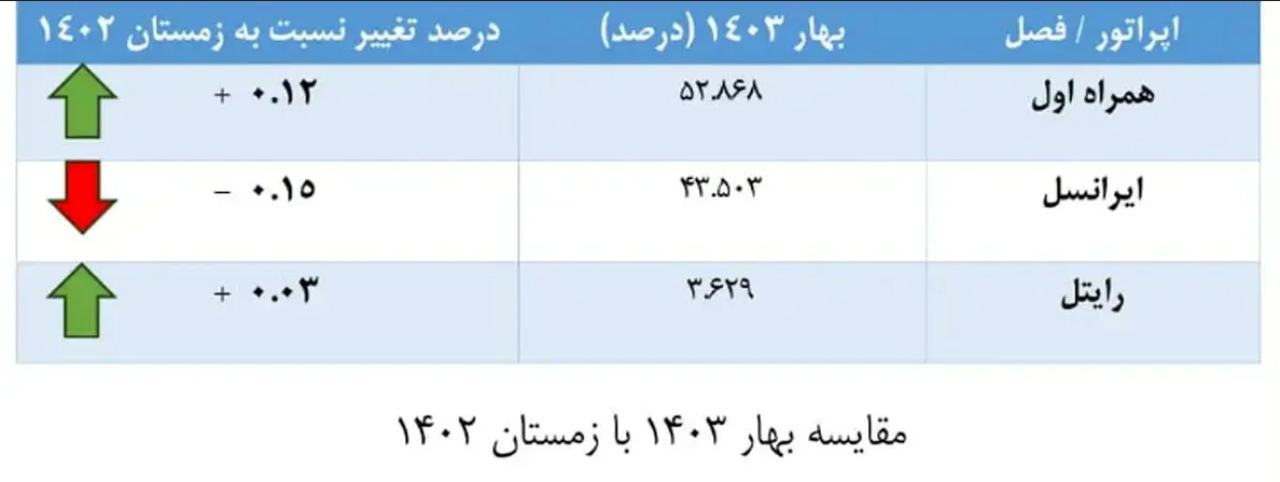 مقایسه سهم بازار اپراتورها در بهار 1403و زمستان 1402