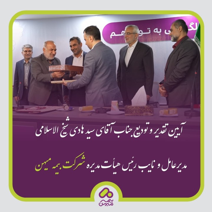 آیین تودیع جناب آقای سیدهادی شیخ الاسلامی، مدیرعامل و نایب رئیس هیأت مدیره شرکت بیمه میهن، روز یکشنبه ۱ مهرماه ۱۴۰۳ با حضور اعضای هیأت مدیره، هیأت عامل، مدیران و میهمانان ویژه در محل ستاد مرکزی بیمه میهن برگزار شد.
