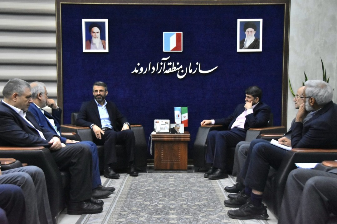 به گزارش روابط عمومی و امور بینالملل سازمان منطقه آزاد اروند، آقایان «علی زارعی» رئیس هیأت مدیره و مدیرعامل به همراه تنی چند از مدیران سازمان منطقه آزاد اروند در نشستی با «محمدرضا مدرس خیابانی» نائب رئیس هیأت مدیره و مدیرعامل گروه کشتیرانی جمهوری اسلامی ایران، که در ساختمان شهید آیتالله رئیسی سازمان منطقه آزاد اروند برگزار شد، پیرامون ظرفیتهای منطقه آزاد اروند در حوزه اقتصاد دریا گفتوگو کردند.