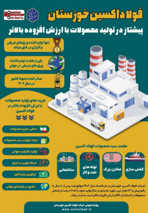 شرکت فولاد اکسین خوزستان در خرداد ماه 1403 موفق شد پس از 7 سال با رقم بیش از 83 هزار تن رکورد جدیدی در تناژ تولید خود را که 91 درصد آن شامل محصولات با استاندارد API و ارزش افزوده بالاتر است به ثبت رساند.