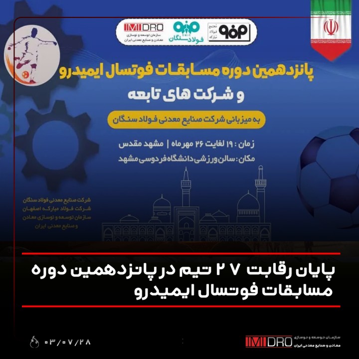 پانزدهمین دوره مسابقات فوتسال ایمیدرو با حضور ۲۷ تیم از شرکت های بخش معدن و صنایع معدنی کشور در شهر مشهد به پایان رسید.