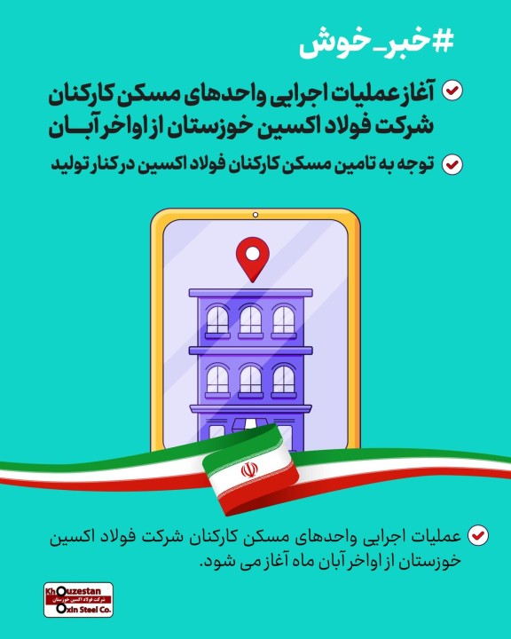 مدیرعامل شرکت تعاونی مسکن کارکنان شرکت فولاد اکسین خوزستان گفت:عملیات اجرایی واحدهای مسکن کارکنان شرکت فولاد اکسین خوزستان اواخر آبان ماه تا اوایل آذرماه آغاز می شود.