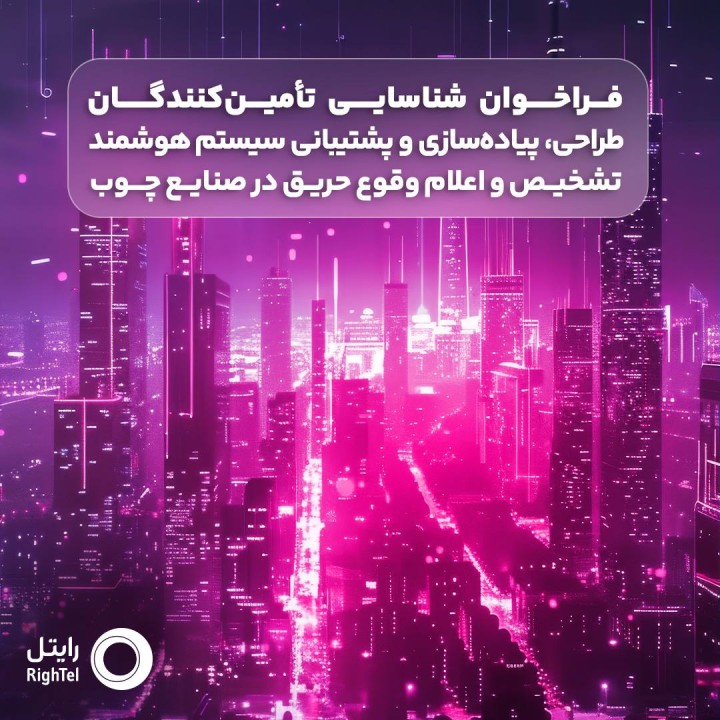 شرکت خدمات ارتباطی رایتل در نظر دارد از طریق این فراخوان، تأمین کنندگان فعال در حوزه ” طراحی، پیاده سازی و پشتیبانی سیستم هوشمند تشخیص و اعلام وقوع حریق در صنایع چوب” را مطابق با نیازمندی خود شناسایی نماید. بر این اساس از تمامی شرکتهای فعال در این حوزه دعوت بعمل میآید تا ضمن مطالعه توضیحات زیر و مستندات پیوست، در صورت دارا بودن شرایط، از طریق گزینه زیر نسبت به اعلام آمادگی خود اقدام نمایند.