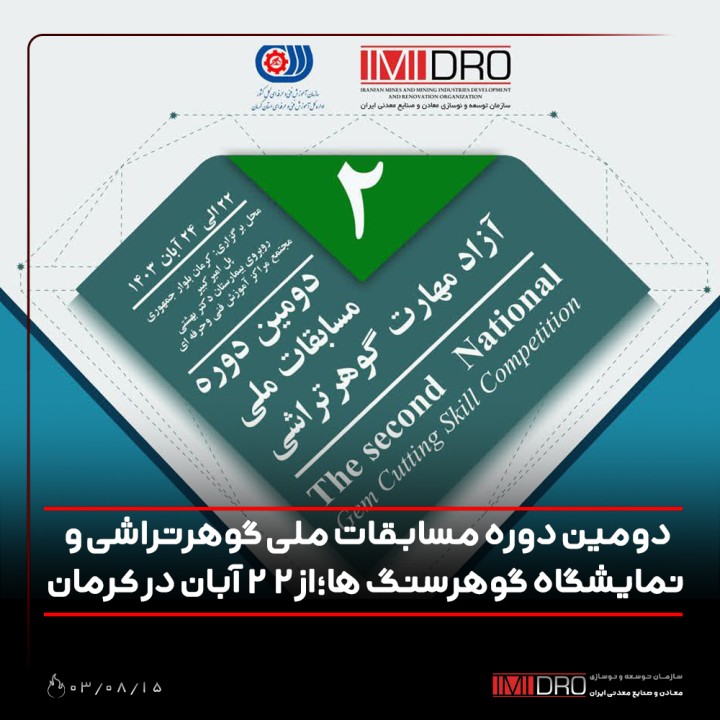 این رویداد که شامل رشته های دامله، کاروینگ، فست و فیروزه تراشی و نمایشگاه گوهرسنگ ها و صنایع وابسته است، با همکاری ایمیدرو و سازمان آموزش فنی و حرفه ای کشور و با هدف توسعه صنعت گوهرسنگ برپا می شود.