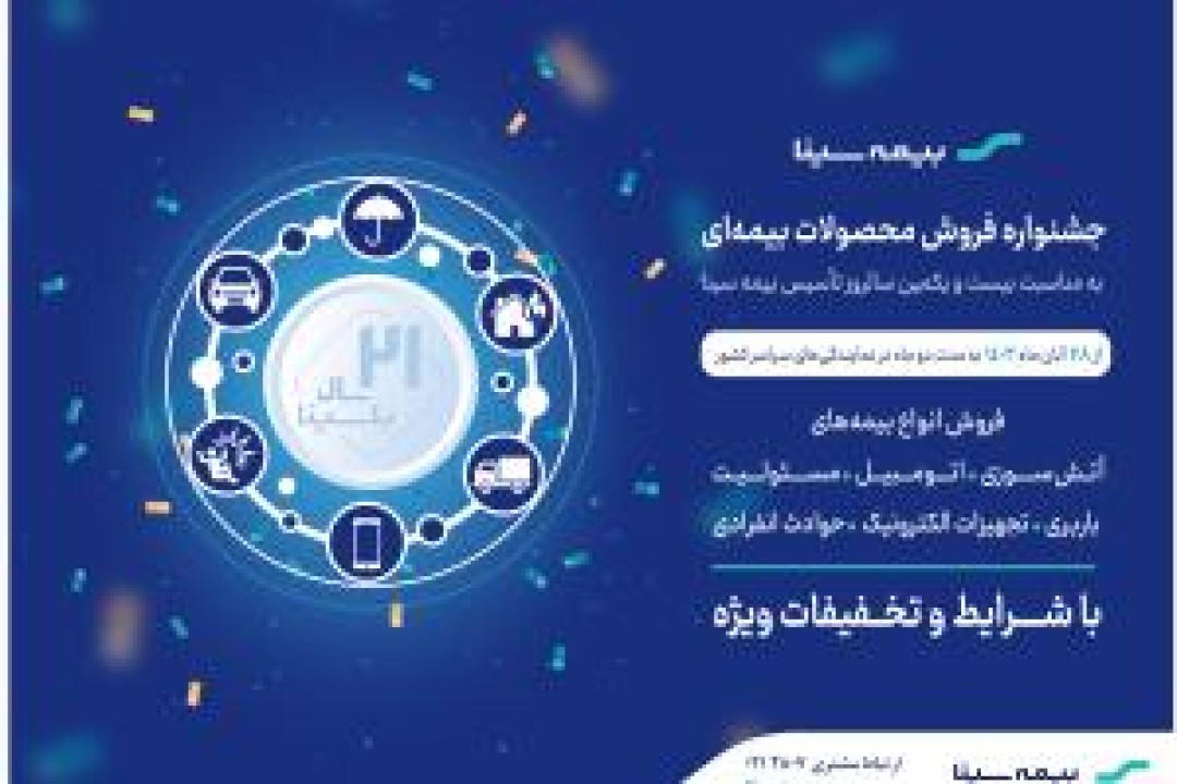 جشنواره فروش نقدی محصولات بیمهای همزمان با سالروز تاسیس بیمه سینا به مدت 2 ماه برگزار میشود.