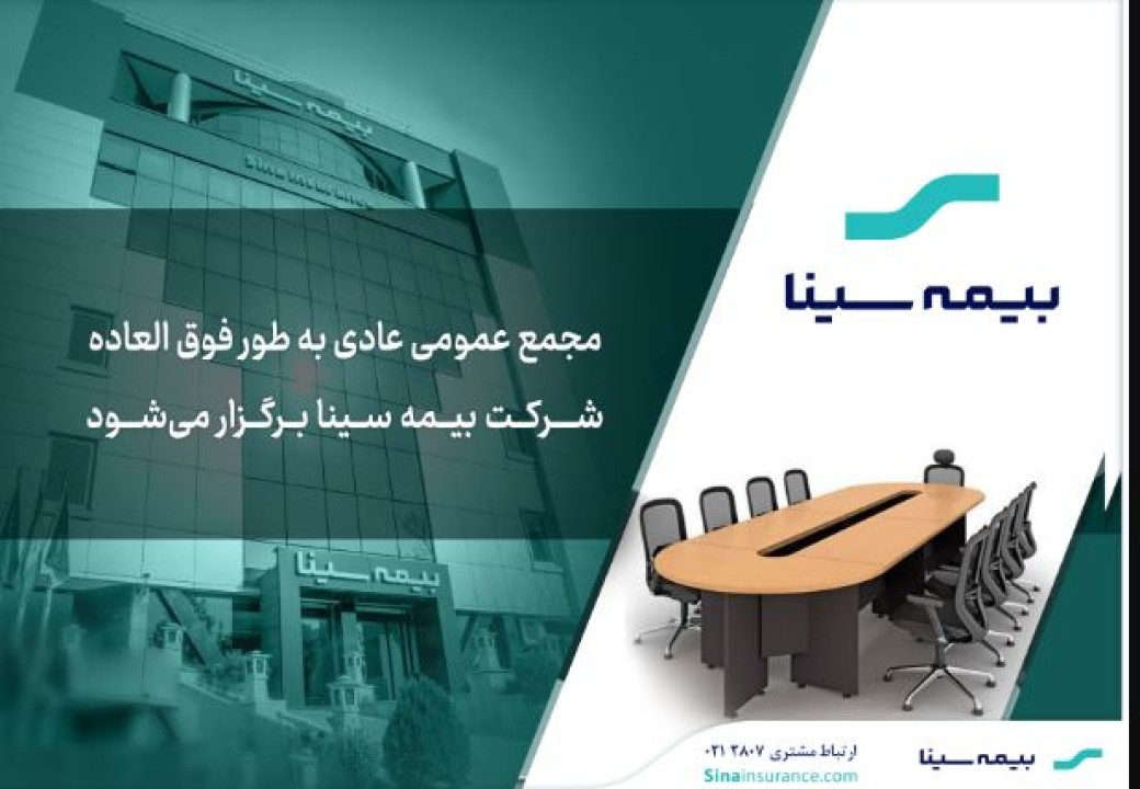 آگهی دعوت به مجمع عمومی عادی بهطور فوقالعاده صاحبان سهام شرکت بیمه سینا(سهامی عام)