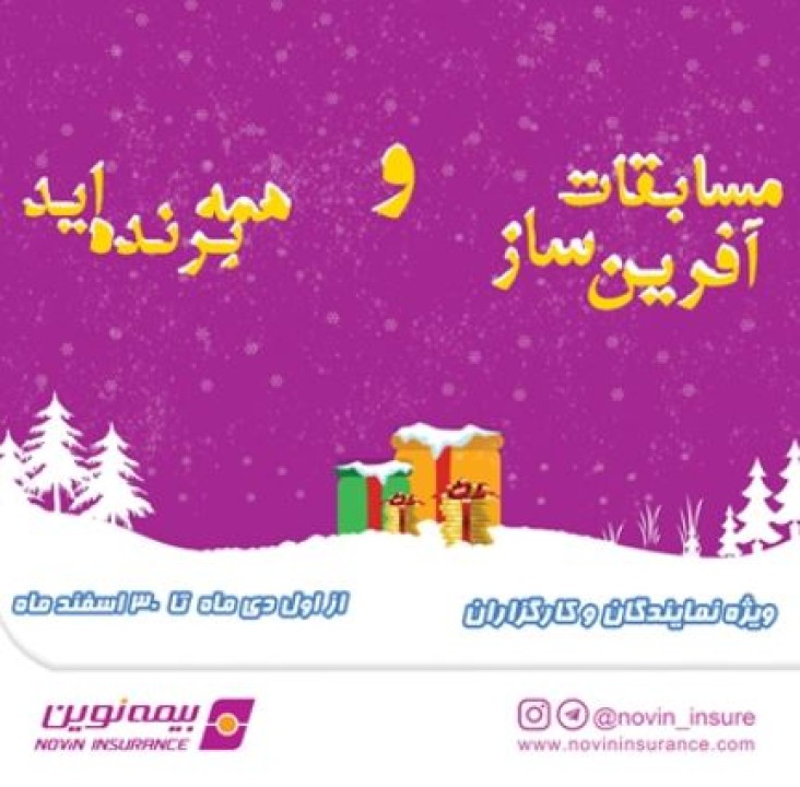 شرکت بیمه نوین با هدف ایجاد انگیزه جهت تلاش مضاعف و جلب مشارکت شبکه فروش شرکت و همچنین فراهم ساختن فضایی به منظور رقابت سالم، مسابقات فروش تحتعنوان «همه برندهاید»، و«آفرین ساز ۱۴۰۳» را برگزار می نماید.