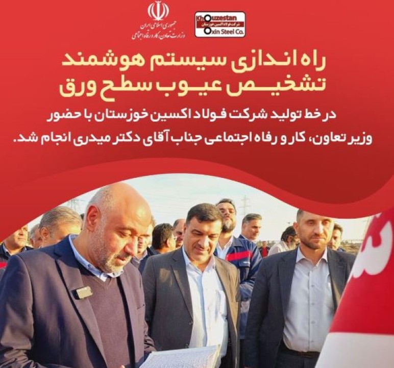 وزیر کار همزمان با سفر ریاست جمهور به خوزستان با حضور در شرکت فولاد اکسین خوزستان در اهواز سیستم هوشمند تشخیص عیوب سطح ورق در خط تولید این شرکت را راهاندازی کرد.