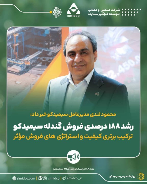 محمود لندی مدیرعامل شرکت صنعتی و معدنی توسعه فراگیر سناباد در گفت و گو با خبرنگار روابط عمومی با اعلام این خبر گفت: واحد فروش سیمیدکو در ۱۰ ماهه اول سال ۱۴۰۳ با فروش ۱,۰۲۷,۱۳۷ تن گندله موفق به ثبت رشدی ۱۸۸ درصدی در فروش این محصول نسبت به مدت مشابه سال گذشته شد.