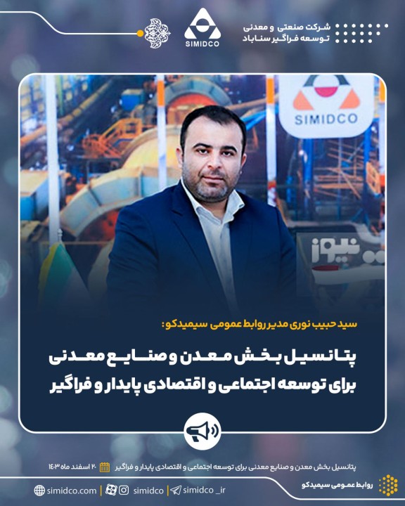 مدیر روابط عمومی سیمیدکو گفت: بخش معدن و صنایع معدنی به عنوان محرکهای اصلی رشد اقتصادی، اشتغالزایی و توسعه زیرساختها، نقش حیاتی در اقتصاد کشور ایفا میکنند. بر همین اساس، شرکت صنعتی و معدنی توسعه فراگیر سناباد به عنوان یکی از بازیگران کلیدی زنجیره فولاد کشور با درک این نقش، توسعه متوازن اقتصادی و زیرساختی در استان خراسان رضوی و به ویژه شهرستان خواف را در کانون توجه خود قرار داده است.