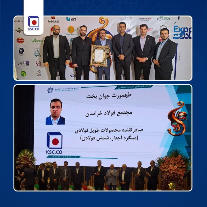 در این مراسم، شامگاه چهارشنبه 27 فروردینماه 1404 در مجتمع شهدای سلامت مشهد با اهدای لوح تقدیر و تندیس افتخار، از تلاشهای این شرکت در حوزه توسعه صادرات محصولات فولادی قدردانی شد. در متن این تقدیرنامه، نقش برجسته مجتمع فولاد خراسان به رهبری طهمورث جوانبخت در ارتقای صادرات غیرنفتی استان و حضور مستمر در بازارهای منطقهای و بینالمللی، مورد تحسین قرار گرفت.