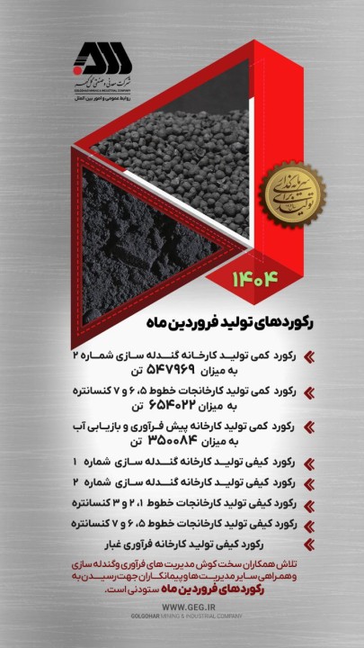 شرکت معدنی و صنعتی گلگهر در فروردینماه سال 1404 با ثبت رکوردهای جدیدی در تولید کمی و کیفی، عملکرد درخشانی از خود به جای گذاشت.
