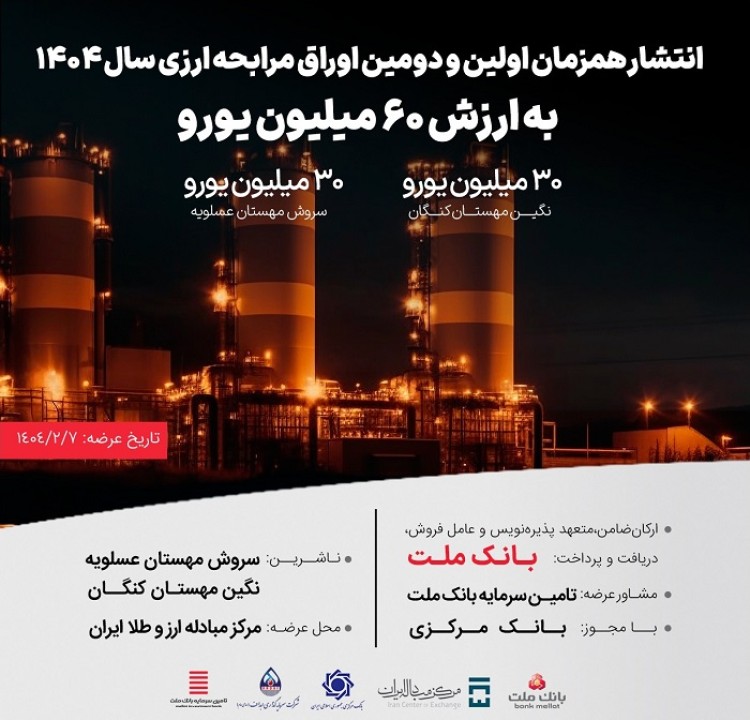 با عاملیت، ضمانت پرداخت و تعهد پذیره نویسی بانک ملت، اوراق مرابحه ارزی شرکت های پتروشیمی سروش مهستان عسلویه و نگین مهستان کنگان منتشر می شود.