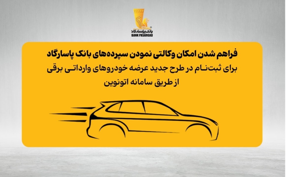 امکان وکالتی نمودن غیرحضوری تمامی حسابهای «بانک پاسارگاد» به منظور ثبتنام در مرحله جدید (دوم) طرح عرضه خودروهای وارداتی، فراهم شد.