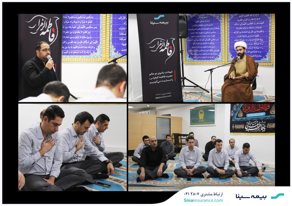 در این مراسم که به مناسبت فرا رسیدن شهادت حضرت فاطمه (س) همزمان با اقامه نماز جماعت ظهر و عصر در نمازخانه ستاد بیمه سینا آغاز شد، پس از ایراد سخنرانی در وصف فضائل بانوی دو عالم، مداحی و ذکر مصیبت در فضایی معنوی برگزار شد.