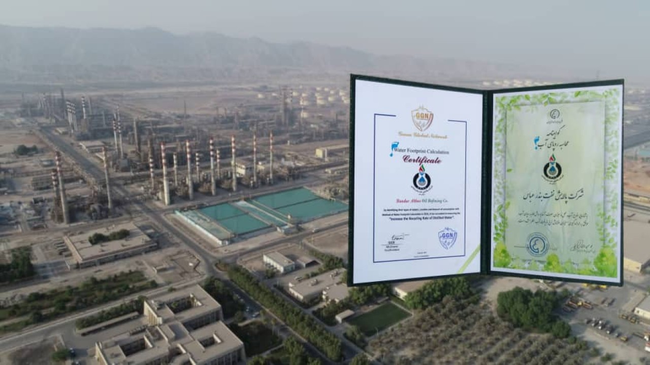شرکت پالایش نفت بندرعباس با اندازهگیری میزان افزایش نرخ بازیافت آب مقطر، موفق به دریافت گواهینامه محاسبه ردپای آب از انجمن مدیریت سبز ایران شد.