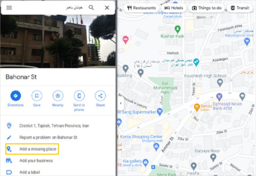 تفاوتی نمیکند صاحب کسبوکاری باشید یا نباشید، شما میتوانید از طریق گزینه Add a Missing Place ادرس و موقعیت کسبوکار یا مغازه یا فروشگاه را ثبت کنید. البته پذیرش درخواست شما به اعتبار و امتیاز اکانت شما هم ارتباط دارد. برای همین هست که افرادی که امتیاز اکانتشان بیشتر است با دریافت هزینه ای اندک ادرس مورد نظر شما را ثبت یا اصلاح مینماید.